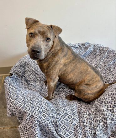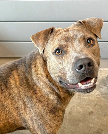 Bryan is a 1-year-old neutered Pit mix with a calm, loving demeanor and a whole lot of heart. This handsome brown brindle boy is heartworm positive, dog-friendly, and happiest when he’s right by your side.